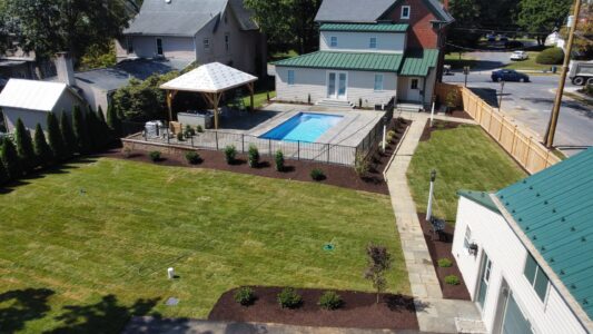 This urban Lititz project on Market Street transformed a compact lot into a serene outdoor sanctuary. We created a cozy patio with built-in planters, an elegant sitting area, and ambient lighting—all designed to enhance the home’s charm. A perfect fusion of city living and outdoor comfort, this space proves that even smaller backyards can deliver big on relaxation and style.