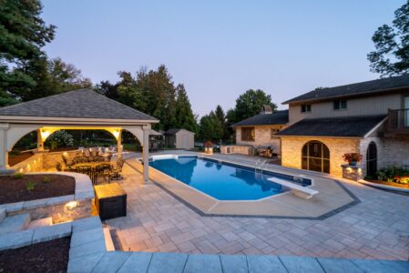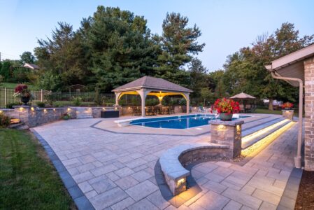 This Mountville transformation brought elegance and comfort together. Custom patios, integrated lighting, and thoughtful landscape design turned an empty backyard into a vibrant outdoor living area that’s ideal for relaxing or entertaining.